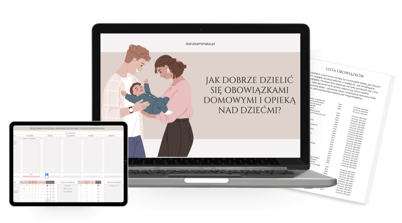 listę obowiązków do wydruku, która czarno na białym pomoże Wam zobrazować, w jakim punkcie obecnie jesteście, jeśli chodzi o sprawiedliwy podział i w jakim kierunku chcecie pójść.